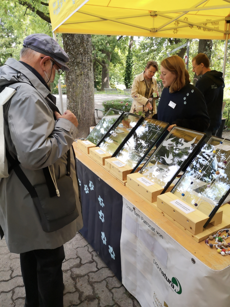 In unseren Gärten und Quartieren sind viele Vögel unterwegs. Doch Achtung! Es lauern viele Gefahren auf sie: An seiner Standaktion deckt der Verein "Natur liegt nahe" spielerisch die Zusammenhänge auf, erklärt die Problematik der modernen Bauweise mit Glas und zeigt Handlungsmöglichkeiten und Lösungen für alle. Um den Vögeln im Quartier direkt nach der Standaktion etwas Gutes tun zu können, erhalten alle Besuchenden eine einheimische Wildpflanze geschenkt.