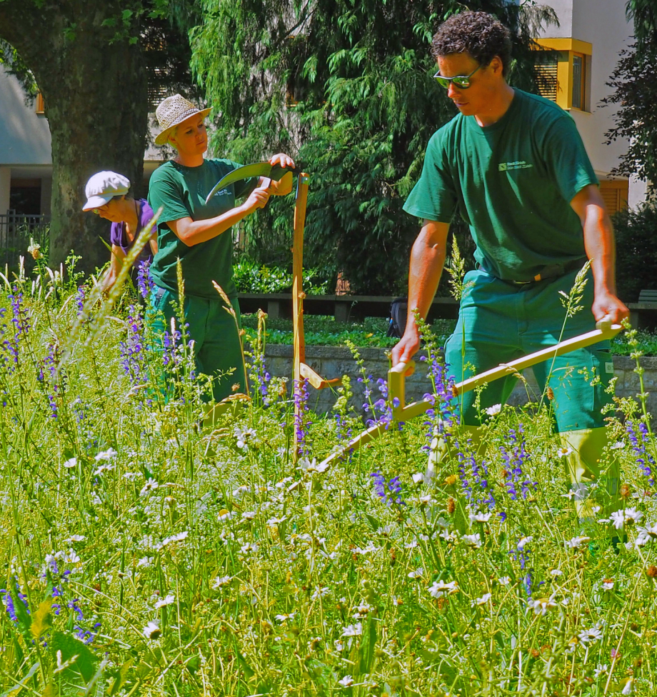 Kurs: Wiesen- und Rasenflächen mit der Sense einfach mähen.