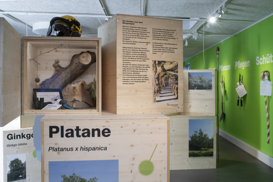 In der aktuellen Ausstellung stellt Grün Stadt Zürich zehn typische Baumarten vor, die mit ihren Besonderheiten und ihrer Bedeutung stellvertretend für alle anderen Strassen-, Grünanlagen- und Hinterhofbäume stehen. Die Ausstellung stellt gleichzeitig die Frage nach der Zukunft der Stadtbäume und damit nach unserer Lebensqualität.