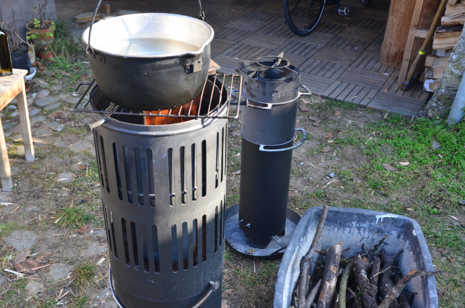 - Das entstehende Feuer bei der Pyrolyse kann zum Grillieren oder Kochen verwendet werden.