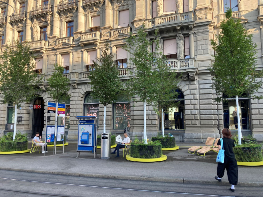 Mit dem Pilotprojekt «Grünes Gastspiel» bringt das Programm Stadtgrün Bäume frühzeitig in den Stadtraum. Jungbäume werden vor ihrer endgültigen Pflanzung temporär auf verschiedenen öffentlichen Plätzen aufgestellt.