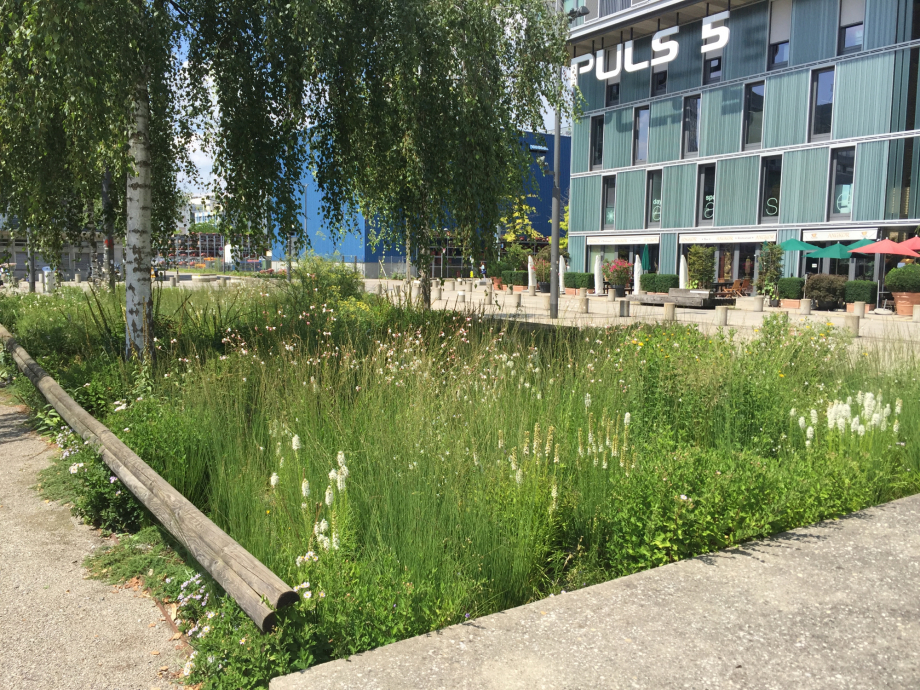 Die «Gehölzbetonten Pflanzensysteme» der ZHAW bieten Möglichkeiten diese breit abzufedern. So wurden 2013  bis heute am Turbinenplatz erfolgreich Unterbepflanzungen der Birken nach diesem Prinzip etabliert. Darauf aufbauend konnte 2019 erneut nach diesem Prinzip am Schützeareal die Begrünung artenreich umgesetzt werden.